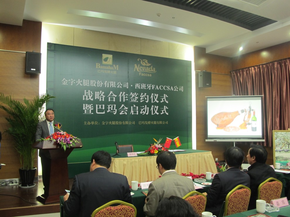 西班牙FACCSA公司負責人拉蒙先生在致辭中表示,發(fā)酵火腿在中國有巨大的市場空間,巴瑪火腿是中國發(fā)酵火腿的領軍品牌。雙方建立戰(zhàn)略合作關系,是企業(yè)發(fā)展需要,也是優(yōu)勢互補的最佳選擇。今后,雙方要整合資源,加強交流,深化合作,努力把兩個企業(yè)的合作打造成中西兩國經貿合作的典范。